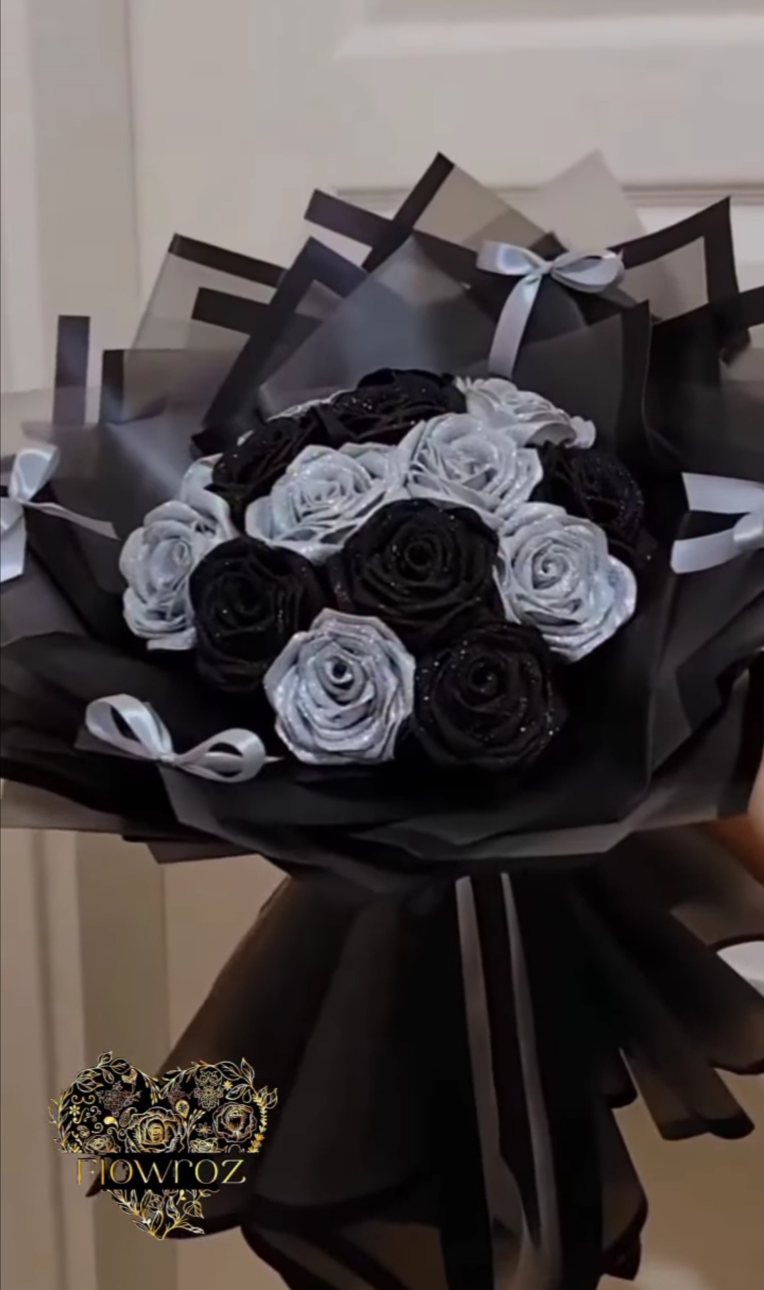 بوکت ۱۶شاخه سوپر شاین مشکی و نقره ای۱٬۲۰۰٬۰۰۰ تومان