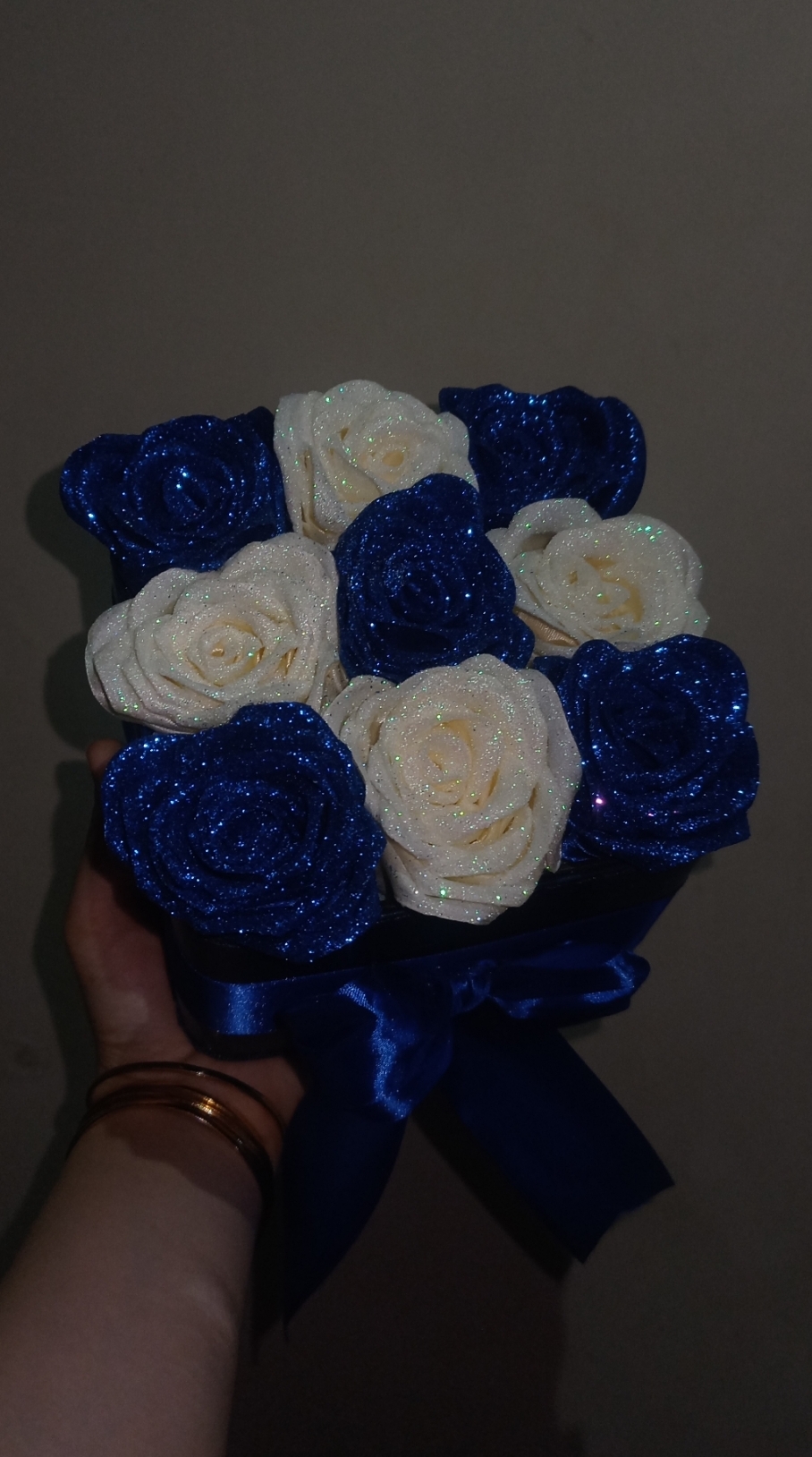 باکس ۹ شاخه ترکیبی سفید و سرمه ای سوپر شاین۶۸۰٬۰۰۰ تومان
