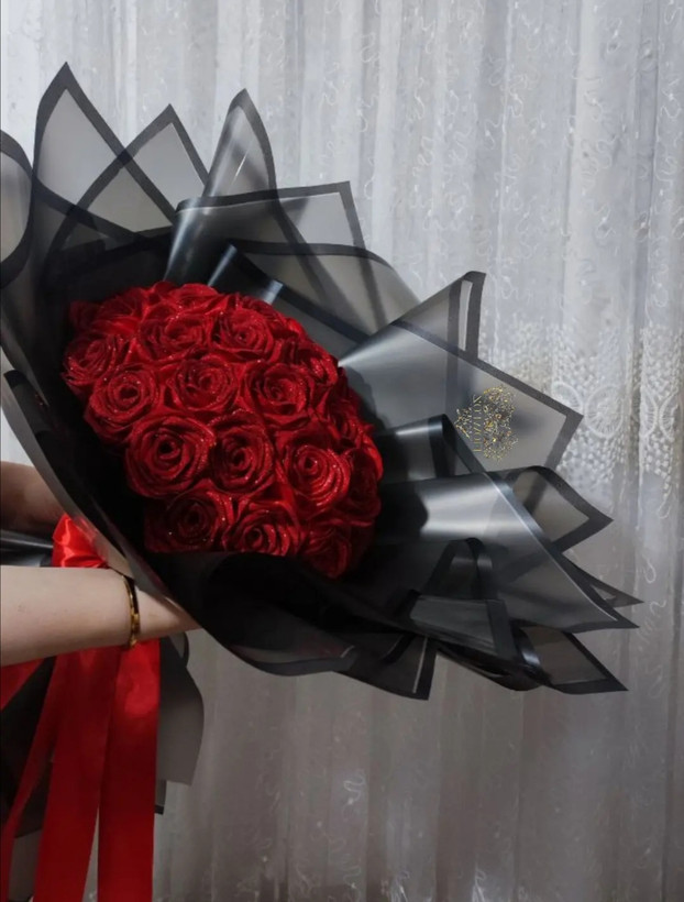 دسته گل مصنوعی رز روبانی ۳۰ شاخه قرمز سوپر شاین